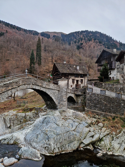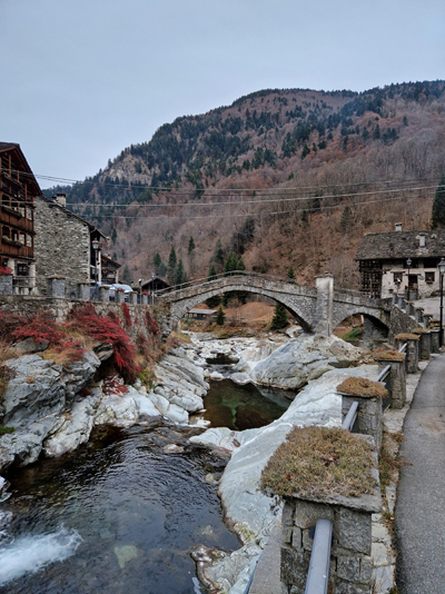 Abbiamo camminato fino a incontrare, sulla destra, la deliziosa e accogliente Locanda delle Alpi, nella quale ci saremmo rifugiati in seguito, e abbiamo proseguito fino al caratteristico ponte di pietra.