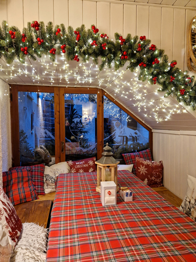 Lungo la strada abbiamo scambiato un saluto con una coppia gentilissima che stava allestendo delle decorazioni natalizie fuori da casa: una renna fatta di tronchetti di legno e una slitta piena di regali.