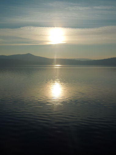 Già nutrita nell’anima dalla leggenda, e profondamente ispirata dagli argentei colori del lago, sulle cui acque tramontava un sole velato che, specchiandosi, disegnava una scia dorata come la morbida e fluente chioma di Albaluce, mi sono incamminata per tornare, e sono capitata davanti a un tavolino che esponeva i libretti della versione rivisitata e romanzata della storia della ninfa. Inutile dire che in meno di un minuto stringevo gioiosamente in mano la mia copia.
