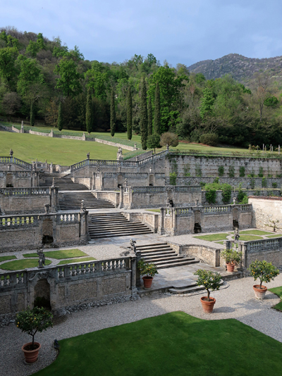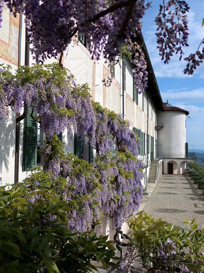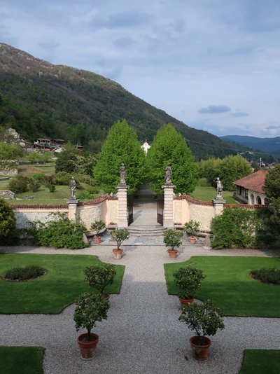 La villa di delizia, come vengono definite a partire dal XVI secolo le residenze di villeggiatura dei nobili, è circondata su due lati da un grande parco, una salita vertiginosa con giardino all’italiana a terrazze, tanti roseti e alberi di limoni che decorano il cortile davanti all’ingresso.