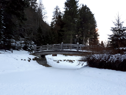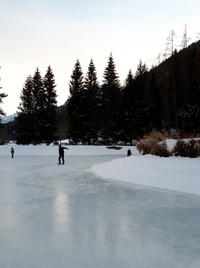 Non ci ho messo molto a riprendere confidenza, scoprendo tuttavia che i veri laghi ghiacciati non hanno la superficie liscia e omogenea a cui mi ero abituata, ci sono punti in cui l’acqua si è increspata e ha ghiacciato così, punti ruvidi e punti lisci e scivolosi come specchi – i miei preferiti – per cui bisogna fare attenzione. Il mio punto preferito era vicino al ponticello, col bosco ombroso dietro. Da lì potevo anche prendere velocità – per quanto possibile – e sentire l’emozione del volo. Un volo sul ghiaccio, pura gioia.
