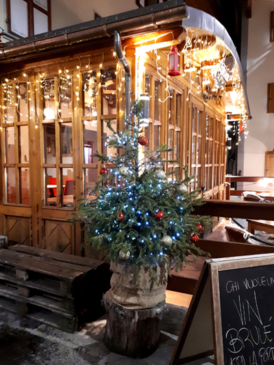 Lasciato a malincuore il laghetto Gover, con la promessa di tornarci, io e il mio compagno di viaggio – che aveva preferito evitare cadute e ha scattato tante belle fotografie – siamo andati nel centro di Gressoney. Piccolo, raccolto e perfetto, con un albero di Natale splendido, le casette di pietra e legno, le lucine, la neve. La montagna come piace a me.
