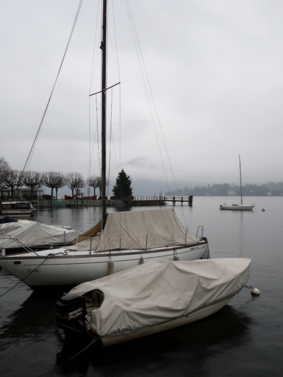 L’abbiamo raggiunta, io, il mio compagno di viaggio e mia mamma, dopo aver guidato sotto una pioggia persistente, che tuttavia aveva trasformato il lago, con le nuvole bianche e bassissime, quasi a toccare l’acqua, in un paesaggio magico, più di quanto avrei immaginato. Dapprima sono apparsi gli stracci di nubi alla base delle montagne, poi le acque mosse, e la mia anima ha iniziato a cantare. Le avrei raggiunte più tardi, con gioia.