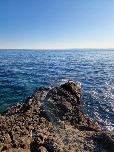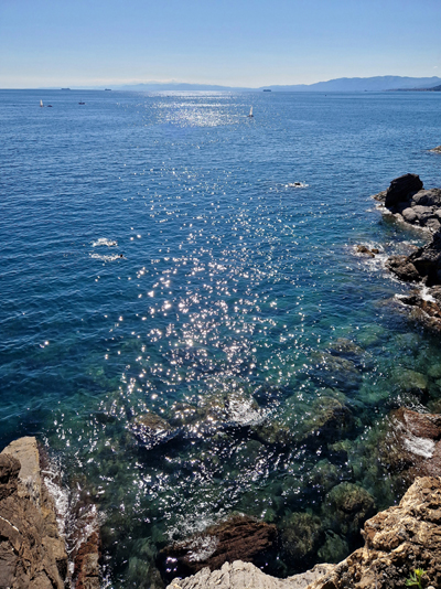Lo immagino col mare cupo e arrabbiato, sferzato dalla dragonaria dalla quale prende nome… molto diverso dall’aspetto mite e lucentissimo con il quale mi appare mentre gli sono accanto. Certe volte è negli aspetti più violenti della natura che le perle più preziose emergono dagli abissi e generano meraviglia. Tuttavia, sembra non essere questa una di quelle volte, pertanto mi godo la visione piena di bellezza luminosa, in pace.