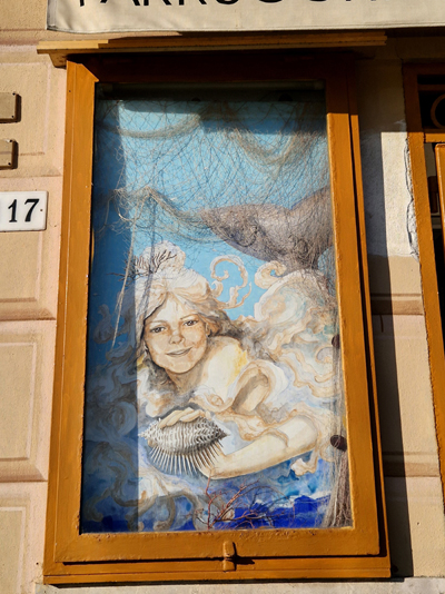 Quando abbiamo avuto voglia di alzarci, con gli occhi saturi di colori, ci siamo quindi incamminati verso la macchina. Mi sono ripromessa di tornare per adottare qualche pesciolino di legno dalle botteghe della passeggiata, ma ad attirare la mia attenzione sono state due splendide sirene dipinte che sorridevano accanto all’ingresso di un negozio di acconciature. Una delle due, in particolare, mi ha toccato il cuore. Il suo dolce sorriso è stata una carezza, e mi ha ricordato, ancora una volta, l’amore che ho sempre nutrito per loro – anche se col tempo l’ho un po’ dimenticato, o volutamente abbandonato.